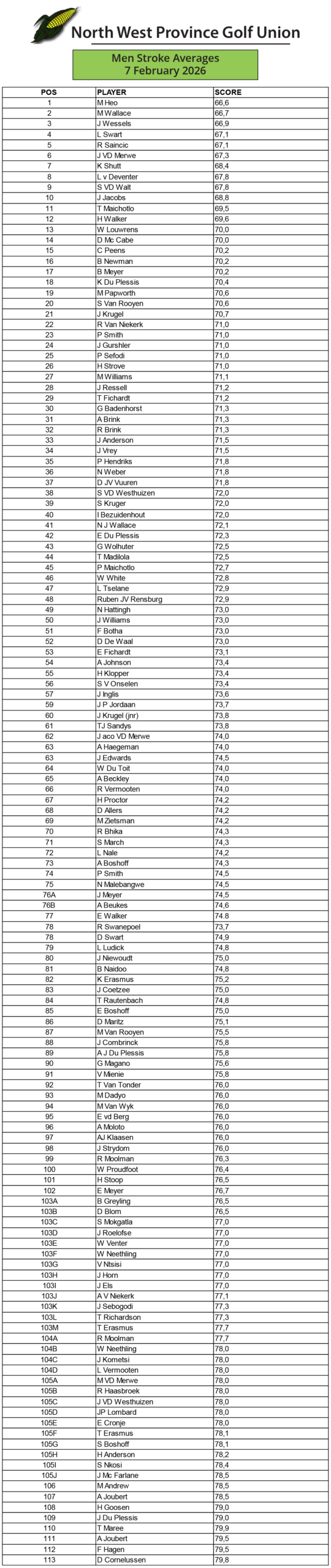 Senior Stroke Averages